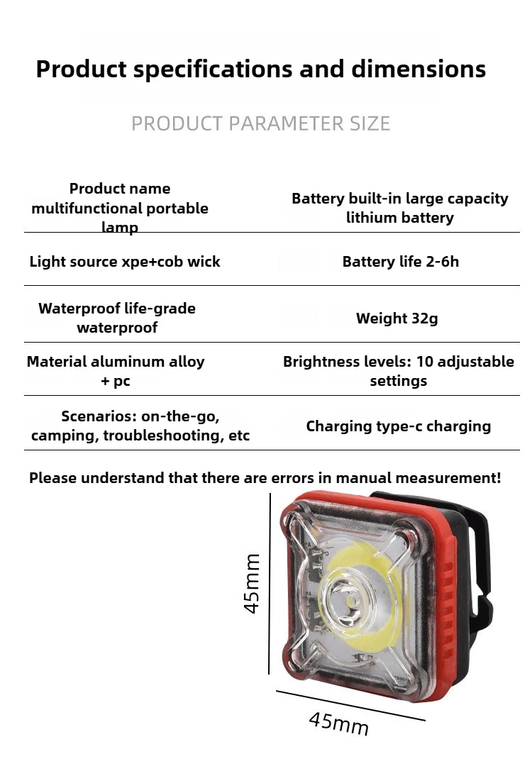 ZHENAO WO89 Mini Headlamp combines professional-grade illumination with versatile portability. Featuring dual light sources—XPG LED and COB technology—this compact 32g headlamp delivers powerful brightness across multiple modes. The IPX4 waterproof rating ensures reliable performance in demanding conditions, while the built-in lithium battery charges via Type-C USB for convenient field replenishment. Eight distinct operating modes include adjustable warm, red, green, and blue side lighting, synchronized dual-color flashing, and four main light intensities from maximum to low power. The ergonomic side-press switch and durable ABS+PC construction make this 4.3cm headlamp ideal for camping, outdoor work, emergency response, and hands-free applications where dependable illumination matters.