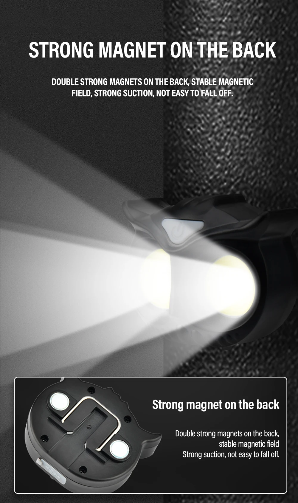 The ZHENAO WT-208 COB Owl Headlamp delivers versatile illumination for outdoor adventures and professional tasks. Featuring dual COB bulbs paired with ten LED lights, this compact headlamp offers five distinct brightness modes: powerful COB output, dimmed COB setting, red LED illumination, red flash mode, and emergency SOS function. The integrated 1200mAh polymer battery provides extended runtime and charges conveniently via Type-C USB. Built to withstand demanding conditions with IPX4 waterproof protection, the lightweight 68g design ensures comfortable wear during running, fishing, camping, or cycling. The durable ABS construction, combined with convenient hook and magnetic attachment points, makes this headlamp an essential tool for hands-free operation in any environment.