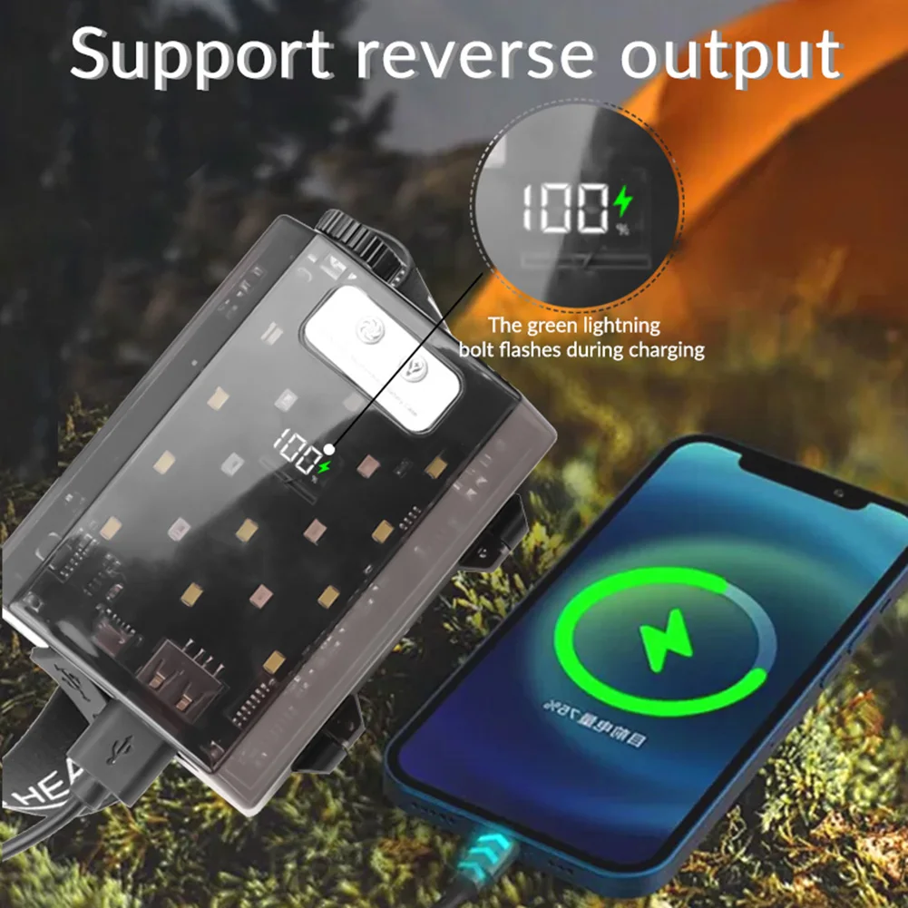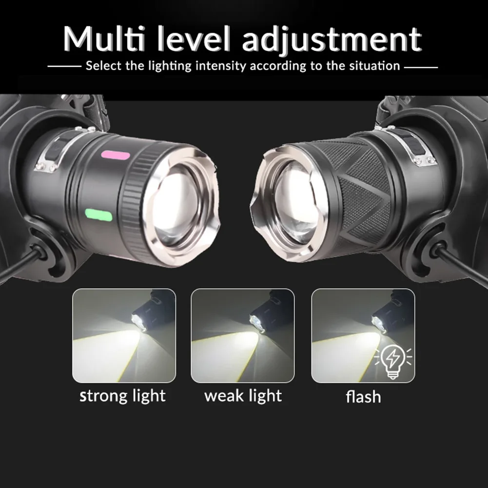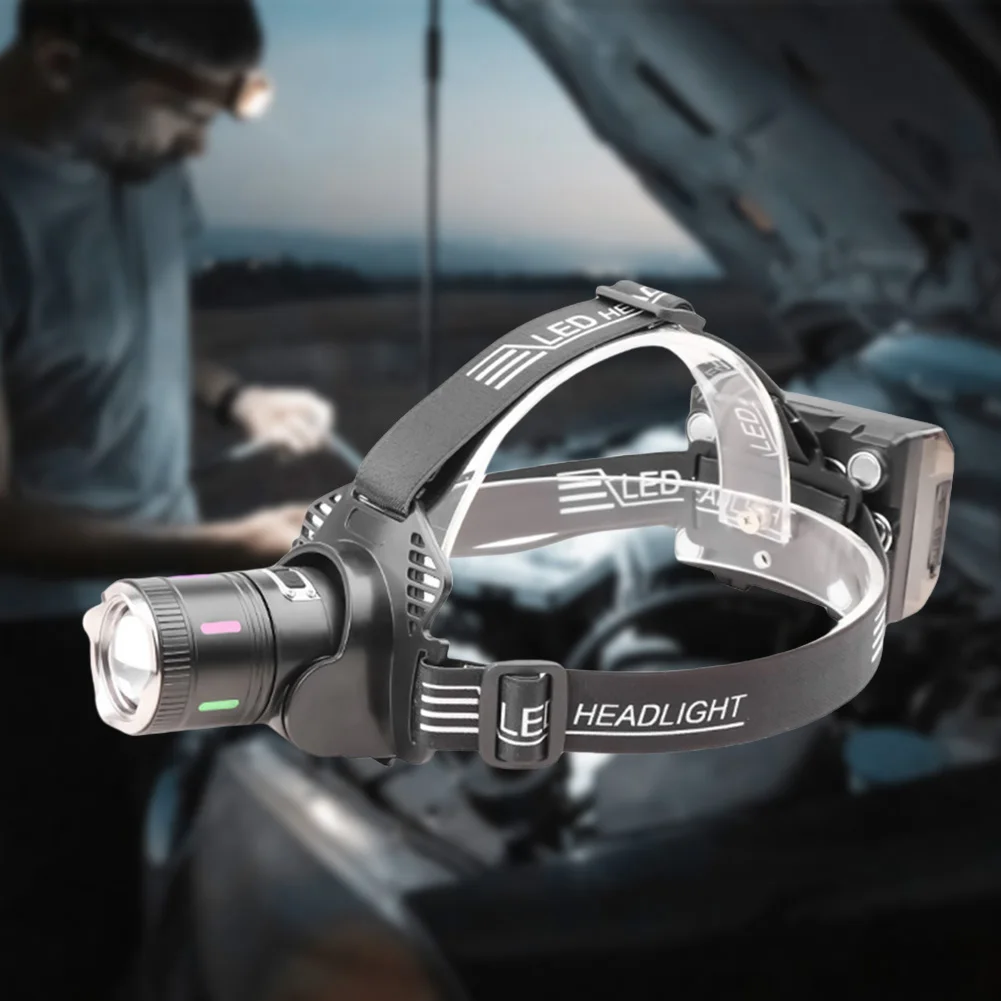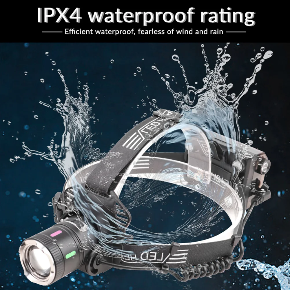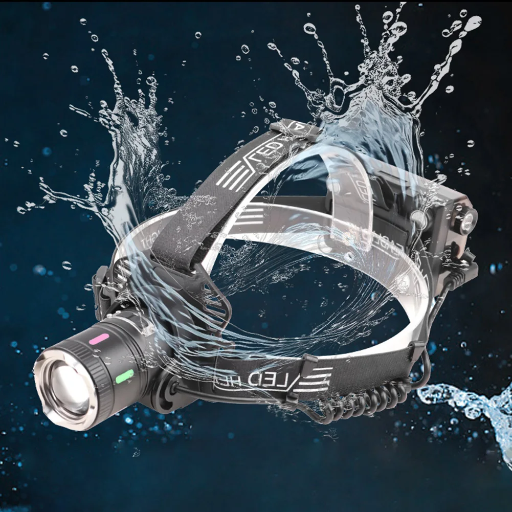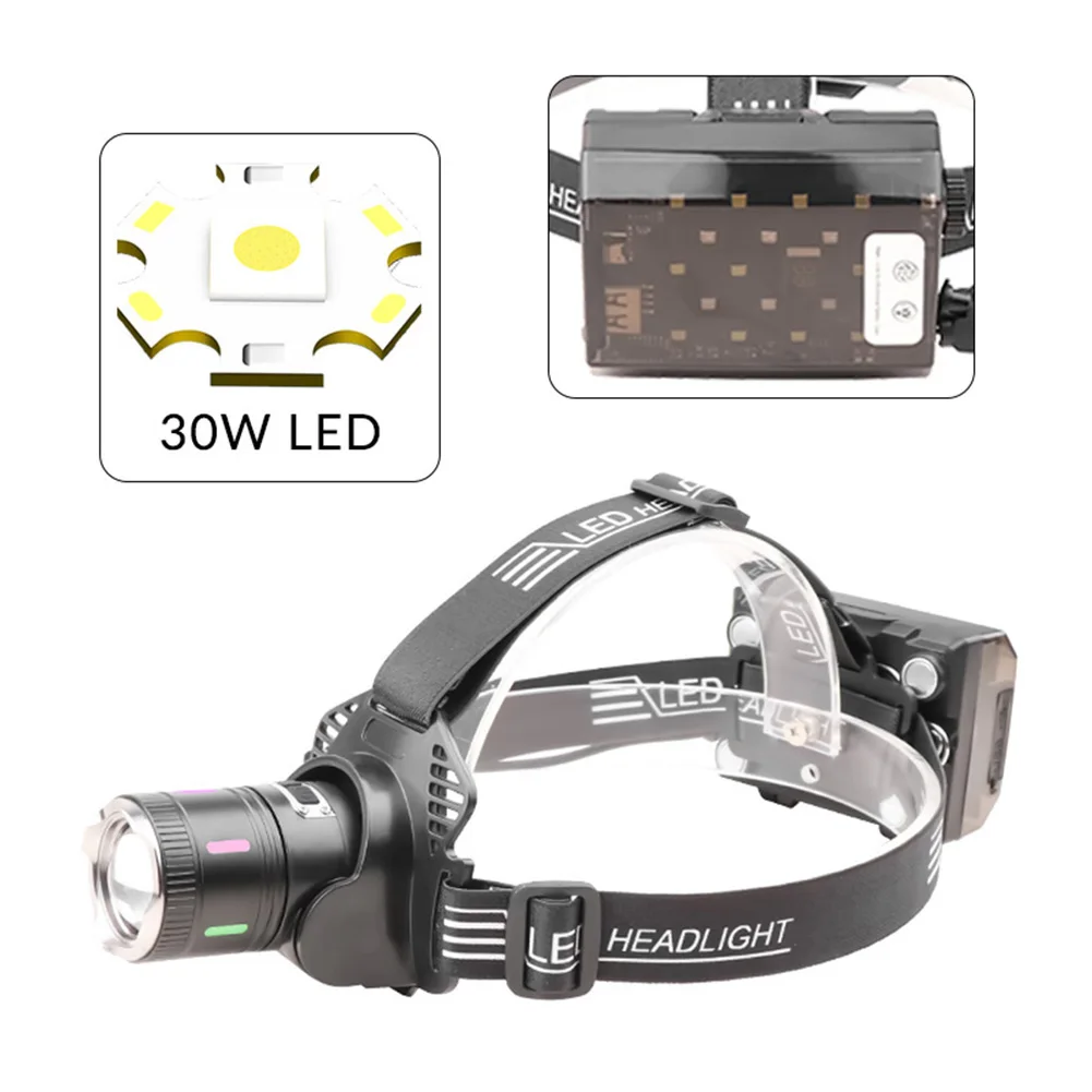 30W LED Camping Search Light Angle Adjustable Super Bright Headlight Power Display Outdoor Portable Headlamp for Power Outages